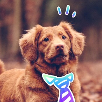 It's wearing a clip-on tie. Looks kinda tired but smiles at you regardless.