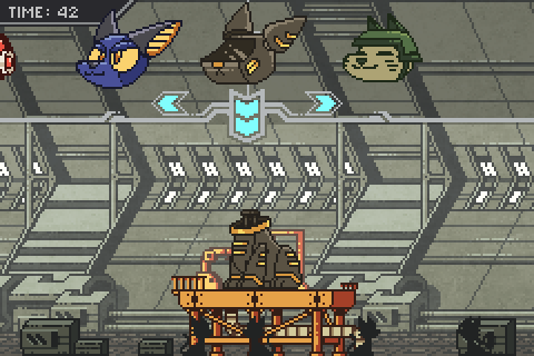 A small brawling game featuring a roster of characters with different moves and sets. Each player is only given two buttons, so there is a strong focus on position and timing.